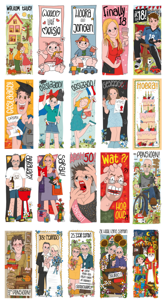 Een persoonlijke banner op maat laten maken behoord ook tot de mogelijkheden. U levert een aantal foto’s en kenmerken van de persoon. Eerst wordt er een concept gemaakt en toegestuurd voor opmerkingen. Daarna wordt het beeld geperfectioneerd. Is de banner helemaal naar ‘t zin dan wordt er een printopdracht naar de drukker gestuurd. Neem voor een persoonlijk banner tijdig contact op, want er gaat nogal wat denk en tekentijd inzitten!