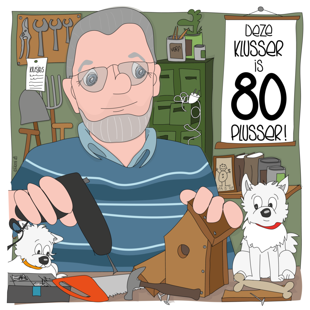 Als oma een mooie banier heeft gekregen, wil opa dat natuurlijk ook! Deze actieve man die veel klusjes voor de ander doet is op deze m(b)anier vastgelegd.