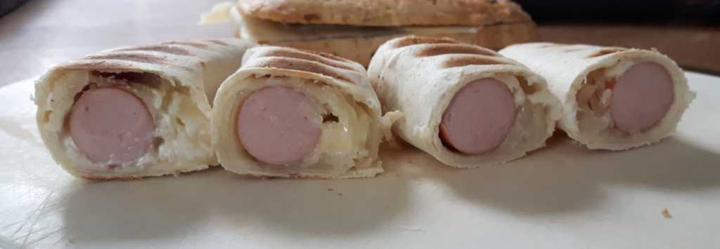 Afscheid nemen is niet vervelend we hebben er een verwendag van gemaakt. Het begon met een lunch extratje. Een tostyhotdogwrap! Recept: kleine wrap, streepje mierikswortelpuree op de wrap, plukje zuurkool erover, plak kaas en een frankfuter er bovenop, oprollen en tussen de tostyijzer bakken! Lekker!